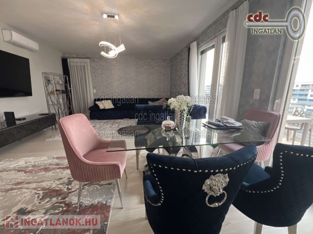 MARINAPARTON KIADÓ, ÚJSZERŰ, ELEGÁNS LUXUSLAKÁS KIADÓ! XIII. kerületben kínáljuk bérbevételre ezt a VII. emeleti, 122 m2-es + 30 m2-es teraszos, 4 szobás, amerikai konyhás, 2 fürdőszobás, egyedi mérésű házközponti fűtéses, egész nap napfényben úszó, csendes, újszerű állapotú lakást 2 db teremgarázs beállóval. Az ingatlan kitűnő elosztású, a szobák külön nyílnak, teraszkapcsolatosak, a konyha gépesített, magasfényű hófehér, az egész lakás elegáns, modern bútorokkal van berendezve. A ház 9 emeletes, liftes, újszerű állapotú, csodaszép belső kerttel és nagyon jó lakóközösséggel. A környék varázslatosan gyönyörű a Duna-part csodás lehetőségeket ad a víz és a természet szerelmeseinek. Szuper közlekedés, M3-as metró, buszok, Duna pláza. Az ingatlan 03.15-től költözhető. Közös költség 200 Euro / hó. A lakáshoz tartozik takarító, amelynek díját a bérlő fizeti. Minimum egy évre bérelhető. Két havi kaucióval és egy havi bérleti díjjal lehet szerződés kötni. Bérleti díj 3500 Euro + rezsi.