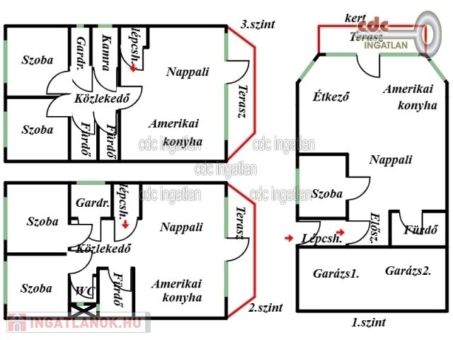 PÁLVÖLGYBEN, VÁROSI PANORÁMÁS, LUXUS CSALÁDI HÁZ ELADÓ, KÜLSŐ MEDENCÉVEL! II. kerületben, a Gugger-hegy alján kínálom megvételre ezt az 520 m2-es telken lévő, 300 m2-es, 3 szintes, 3 lakásos, 2 garázsos, 3 felszíni beállóval , kültéri medencével rendelkező, cirkófűtéses, klimatizált, napfényes, csendes, 2000-ben felújított, kitűnő állapotú, 3 lakásos társasházat. Az ingatlan 1989-ben épült, 3 szintes, szintenként egy lakás található. A földszinti terasz- és kertkapcsolatos, 74 m2-es, amerikai konyhás nappali + 1 szoba + fürdőszoba elosztású. A 2. szinten egy 85 m2-es, amerikai konyhás nappali + 2 szoba, gardróbszoba, 2 fürdőszoba és egy nagy terasz található. A 3. szinten 95 m2-es, amerikai konyhás nappali, 2 szoba, gardróbszoba, 2 fürdőszoba, nagy terasz került kialakításra. Minden lakás külön helyrajzi számon van, külön mérőórákkal felszerelt. A két teremgarázs is külön helyrajzi számon van. A kert varázslatosan gyönyörű, parkosított, füvesített, a medence, kiépített grillező és a virágzó növények színkavalkádja teszi még csodálatosabbá az ott élők életét. Szuper befektetés! Az ingatlanok hosszútávra ki vannak adva és a bérlők szívesen maradnának, de igény esetén a kiköltözés is megoldható. Nagy családoknak vagy több generáció együtt élésére is tökéletes választás. Értékálló befektetés! Ez az ingatlan azonnal pénzt hoz! Ezen a helyen presztizs értékű élni. A 2 db teremgarázs-hely, a 3 db felszíni beálló és a gépesített konyhabútorok és a fürdőszobai szekrények az ár részét képezik. Az ingatlan per- és tehermentes! Irányár: 690.000.000 Ft.