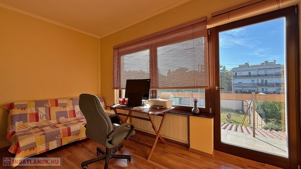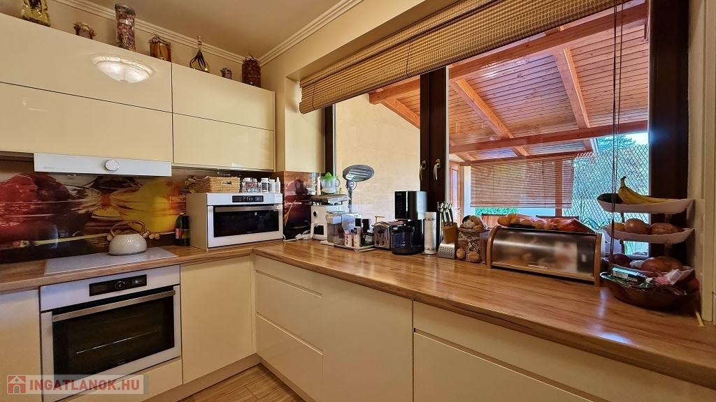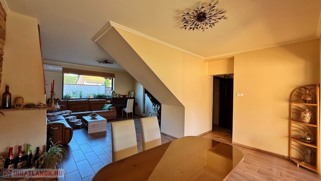 Rákoskeresztúr kertvárosi részén kínálunk megvételre egy 595 m2-es telken lévő, 170 m2-es, 2 szintes, 5 szobás, keleti-nyugati tájolású, napfényes, 30 m2-es terasszal és 5 m2-es erkéllyel rendelkező, sorházi lakást. Az ingatlan a gyakorlatban ikerházként funkcionál. A folyamatos felújításnak köszönhetően állapota újszerű. A felújítás során új, megerősített tetőszerkezet került fel, és megtörtént a víz-, gáz, villanyvezeték cseréje. A lakás padlófűtéssel, gázkazánnal, kandallóval és hűtő-fűtő klímával biztosítja az optimális hőmérsékletet. A hatályos jogszabály szerint, 4 lakásos társasházzá bővíthető. Az ingatlanhoz tartozik 2 autó részére kialakított 27 m2-es garázs, illetve a kerten belül egy 1 autónak, a ház előtt további 3 autónak biztosított a parkolása. A kerti nagykapu és garázsajtó elektromos, távirányítóval nyitható/csukható. A környék infrastruktúrája kiváló, bevásárlási lehetőség, gyógyszertár, kisbolt, óvoda, iskola és bölcsőde pár percre található.