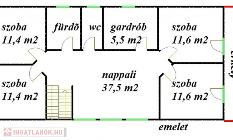 Az ingatlan 2016-ban épült 30 as Porotherm téglából, 10 cm-es szigeteléssel ellátva. Az ablakok 3 rétegű hő és hangszigetelt Hofstadter műanyag nyílászárók, szúnyoghálóval, fahatású, elektromos alumínium redőnyökkel. Az ajtók egyedi gyártású, gyönyörű faajtók.