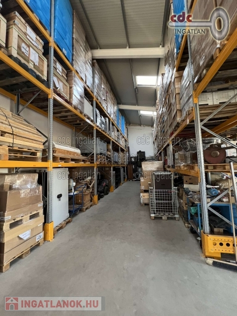 Egyéb: biztonsági kamerarendszer, IT hálózat, távfelügyeletre kötött riasztórendszer, nagyméretű homlokzati világító reklámtábla. Az ingatlan ideális cégközpontnak, logisztikai központnak, vagy műhely besorolásának köszönhetően akár ipari termelőtevékenységre is alkalmas. Jelenleg az épület raktárként működik, 350 raklap kapacitású állványrendszer lett kiépítve, ami a gerendapárok átrendezésével akár 500 raklaphelyig növelhető. Ezen minősített és engedélyeztetett polcrendszer is igény esetén külön megállapodás részét képezheti, valamint a két emelőtargonca, továbbá szükség esetén a kint elhelyezett 4 raktár- és egy irodakonténer is. Az ingatlan per- és tehermentes és rövid időn belül birtokba is vehető! Az ingatlan fordított áfával könnyedén kivitelezhető. Irányár: 145.000.000 Ft.