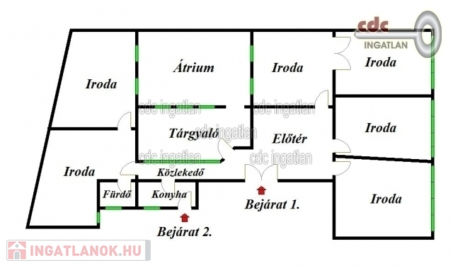 Anno 4 külön lakás egybenyitásával lett kialakítva. A tulajdoni lapon 292 nm, a valóságban 300 nm-es lakás irodának, bemutató-teremnek, jóga-stúdiónak kiváló lehetőség, de akár lakásnak is kialakítható.