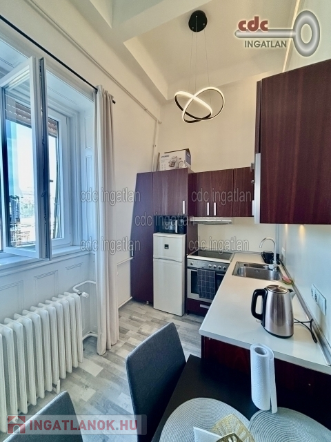 Eladó egy frekventált helyen lévő, PANORÁMÁS lakás az Astoria mellett. Az ingatlan a ház legfelső emeletén helyezkedik el, 46 m2-es, amerikai konyhás nappaliból és egy tágas hálószobából áll. A lakás klímával felszerelt. Az ingatlan néhány évvel ezelőtt lett teljesen felújítva. A vételár a bútorokat és a berendezéseket is tartalmazza.