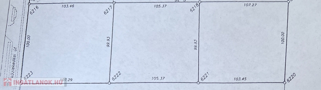 Alakja optimális. Utcafrontja 100 m, mélysége 316,11 m.
