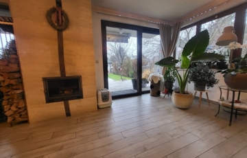 A fűtést modern kondenzációs gázkazán, padlófűtés, radiátorok, valamint a nappaliban kandalló biztosítja.