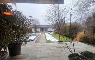 A kert szakember által megtervezett, gyönyörűen karbantartott, automata öntöző rendszerrel felszerelt. Az épített medence fűthető, és ellenáramoltatott.
